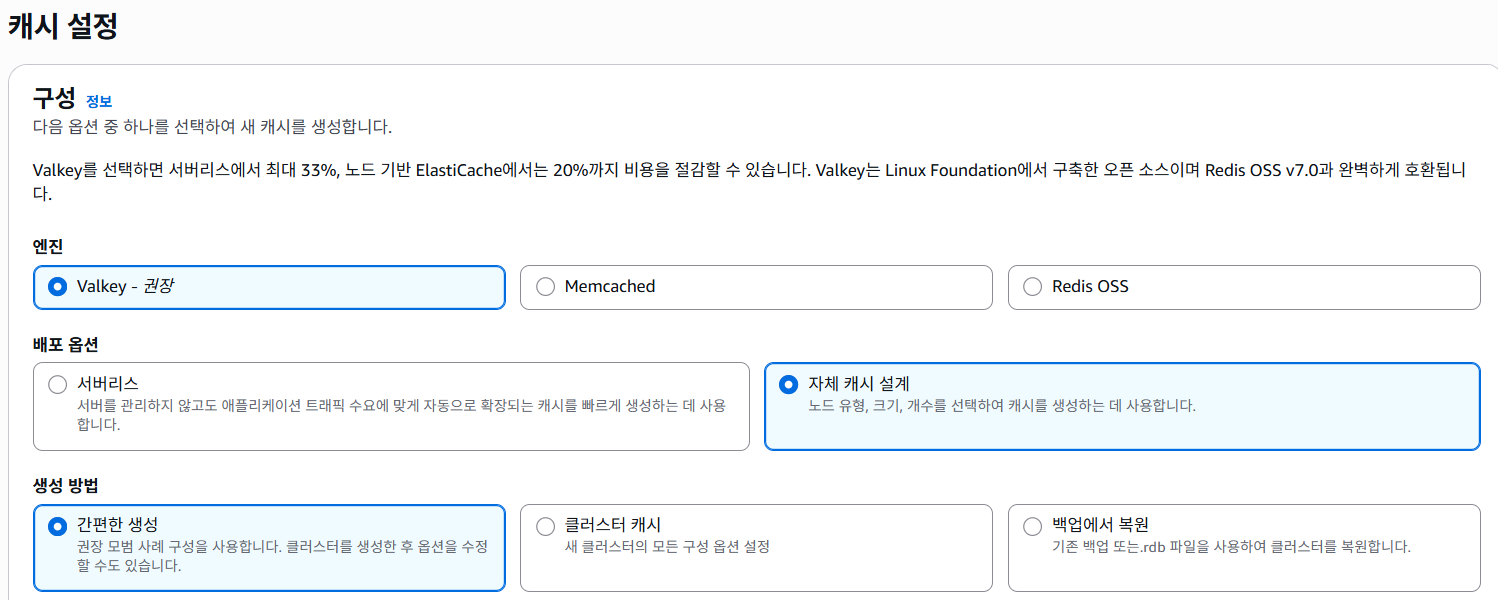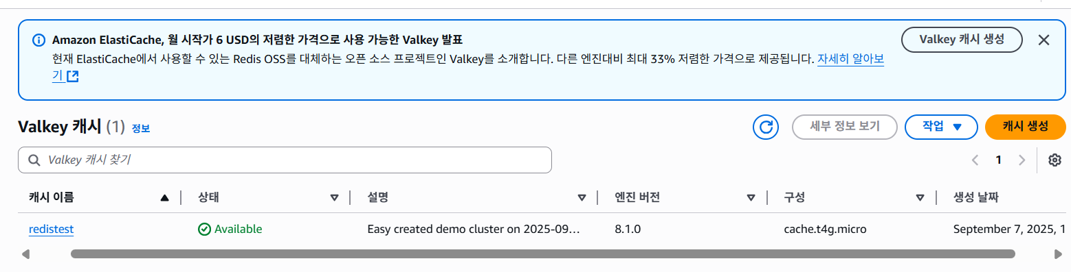 ElastiCache ์ ์บ์ ํ๋ ์์ฑํ๊ธฐ - Valkey ์บ์