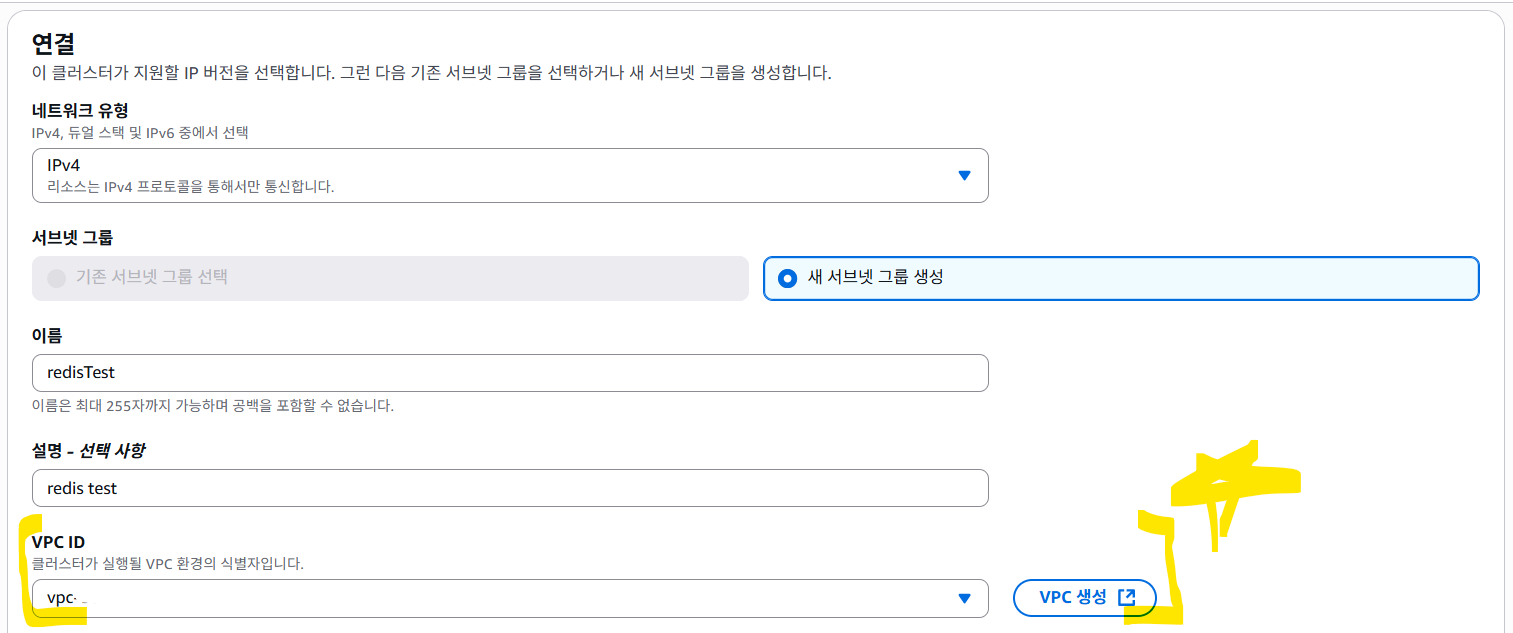 ElastiCache์์ Redis ํด๋ฌ์คํฐ๋ฅผ ๋ง๋ค ๋, ๋